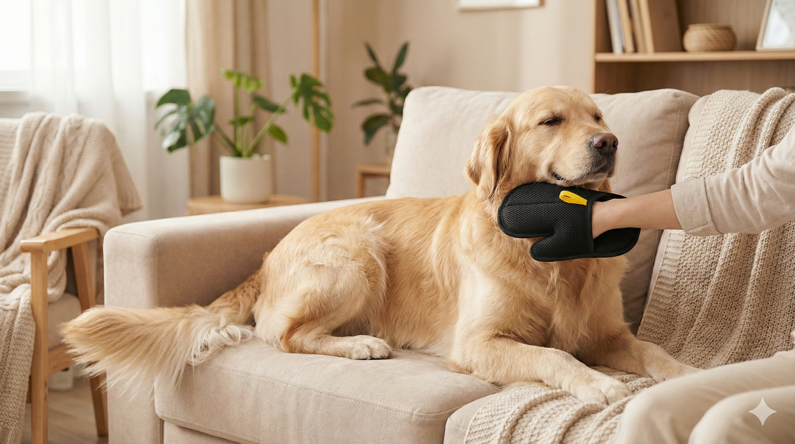 This glove feels very soft and my dog doesn’t try to run away like he used to with brushes. It removes a lot of loose hair easily. Very satisfied.